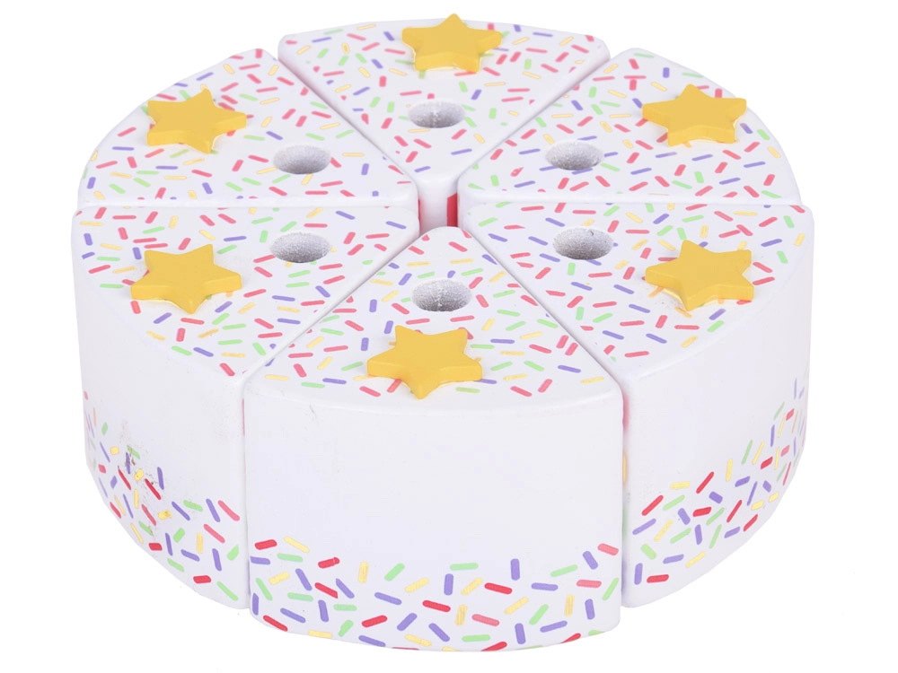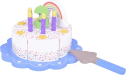 La tarta está hecha de madera de alta calidad, lo que garantiza su durabilidad y seguridad para el juego infantil.