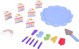 El diseño general se completa con una bandeja elegante y una espátula con mango azul, que permiten a los niños servir fácilmente las porciones. El set también incluye números del 1 al 5 y velas, fomentando la creatividad y la organización de los niños.