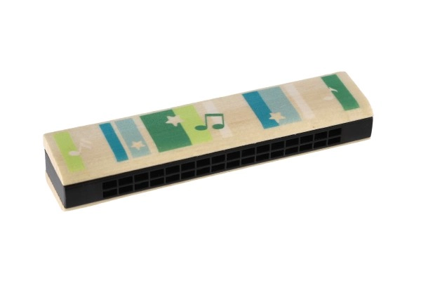 La armónica está fabricada con una combinación de madera y plástico para un agarre agradable y larga durabilidad. Es adecuada para principiantes: basta con soplar y alternar inhalación y exhalación para crear melodías sencillas.