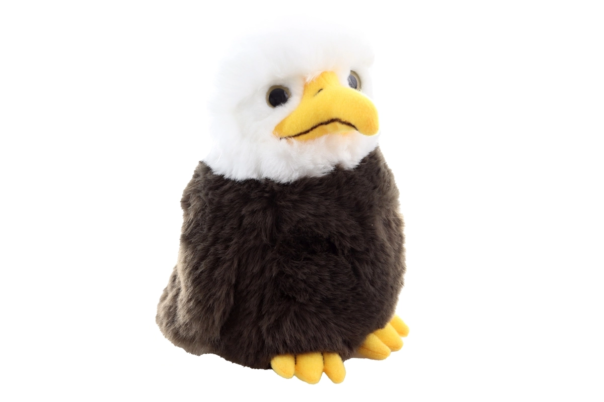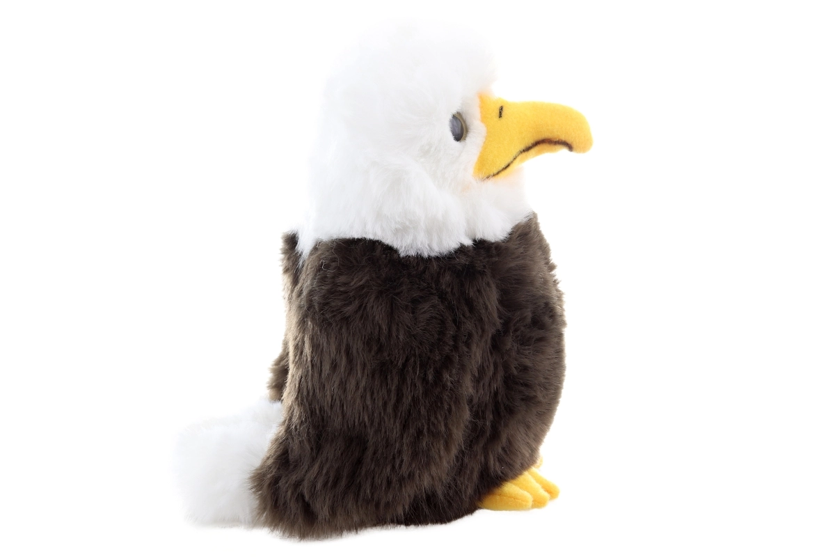 El águila de peluche, con cabeza blanca, pico amarillo y cuerpo marrón, está creado para imitar lo más fielmente posible a un águila real.