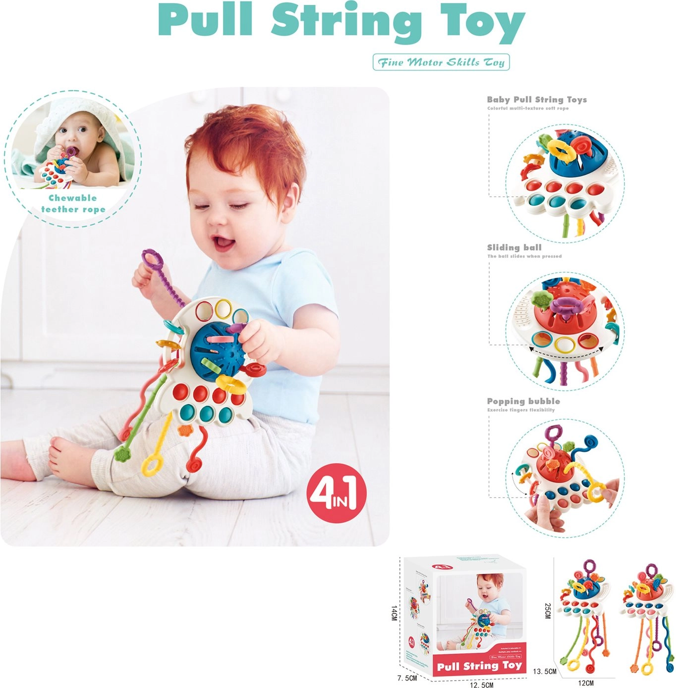 El juguete 4 en 1 Circle está diseñado para estimular los sentidos y apoyar el desarrollo de tu hijo. Gracias a sus colores vivos y diversas texturas, atrae la atención desde una edad temprana: