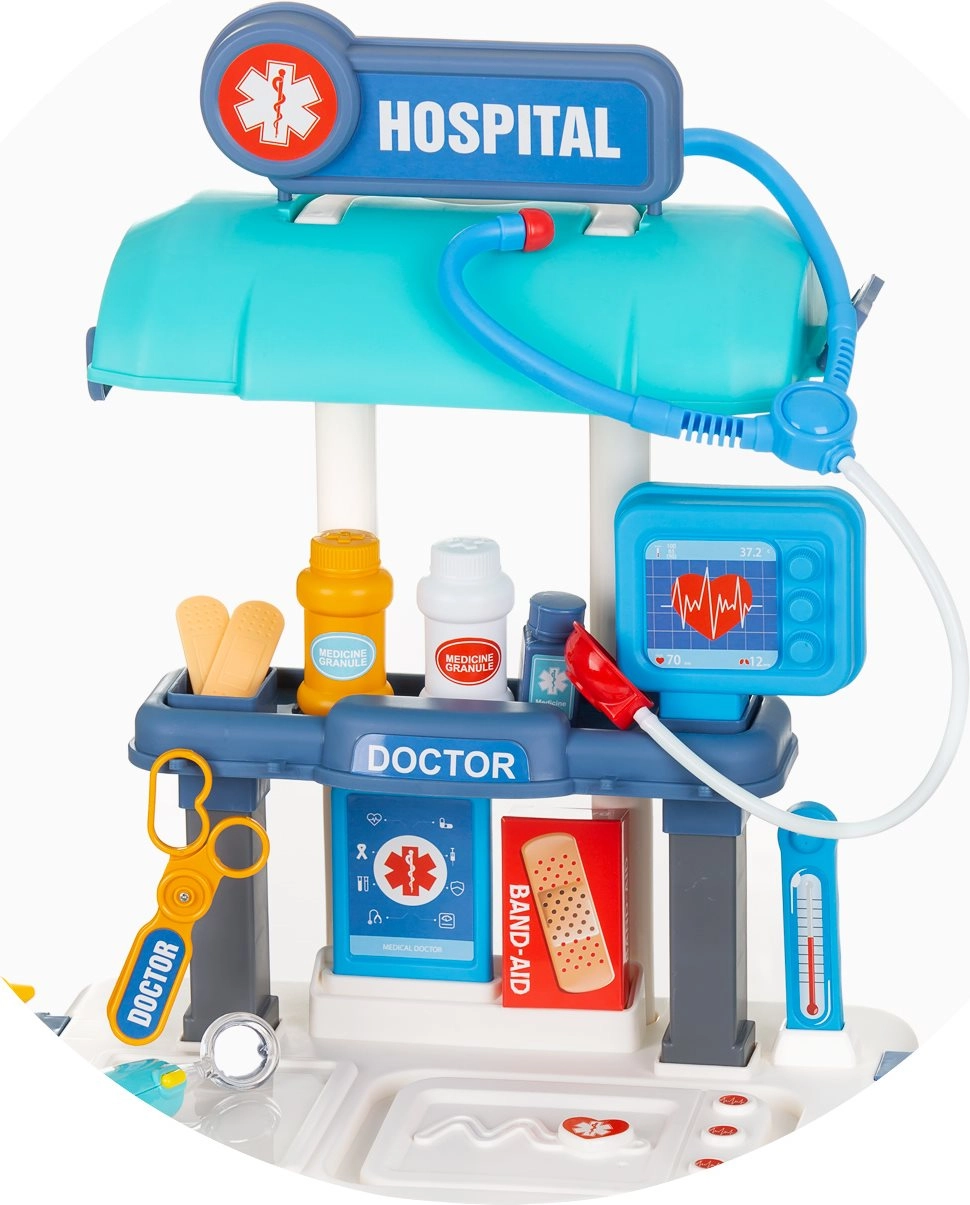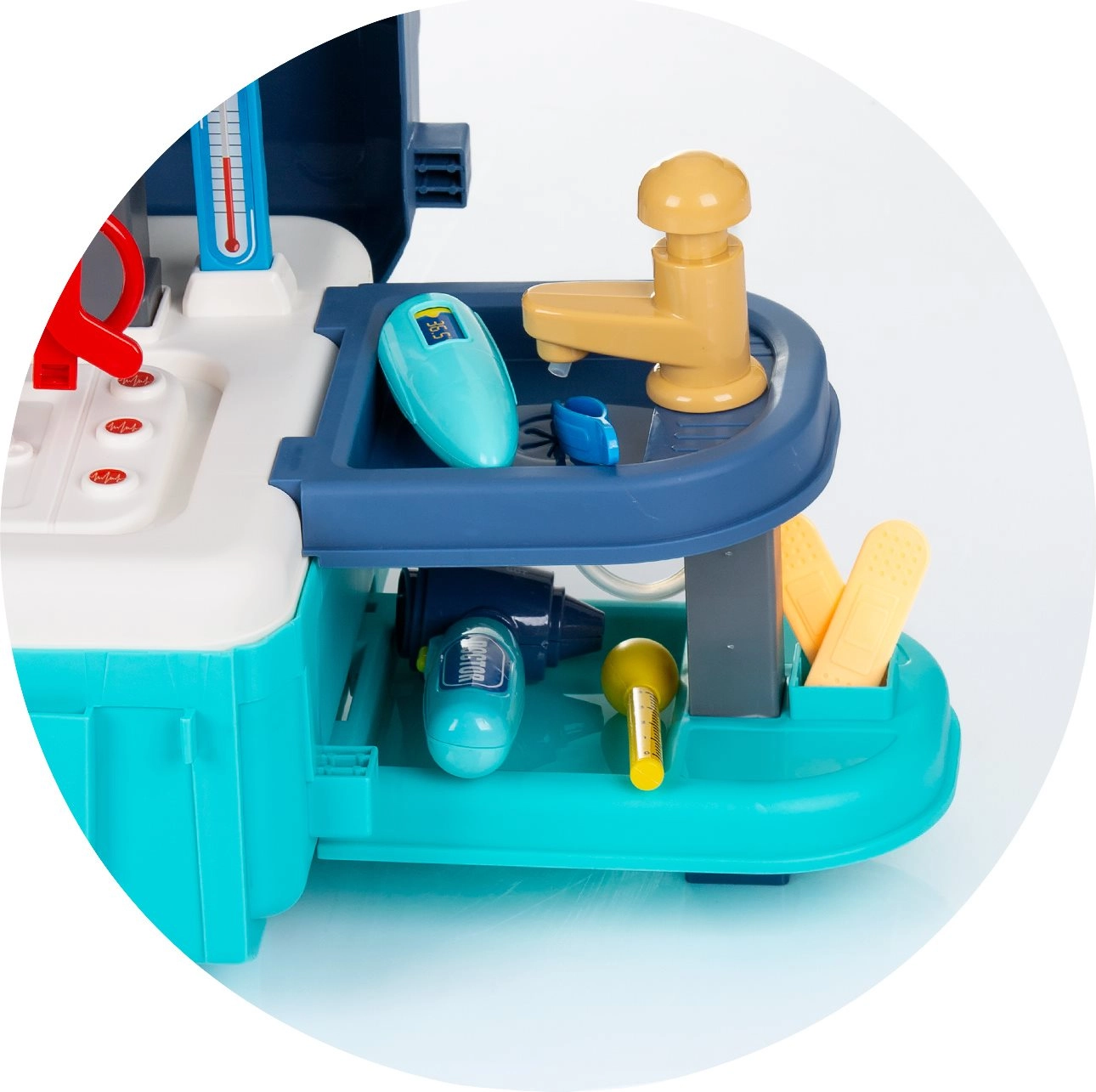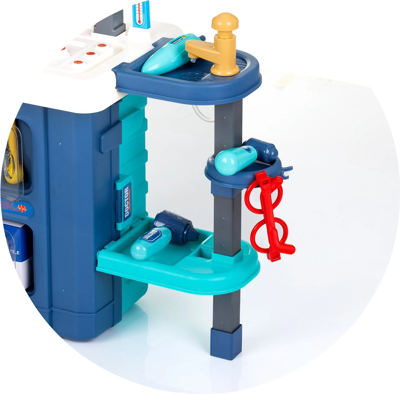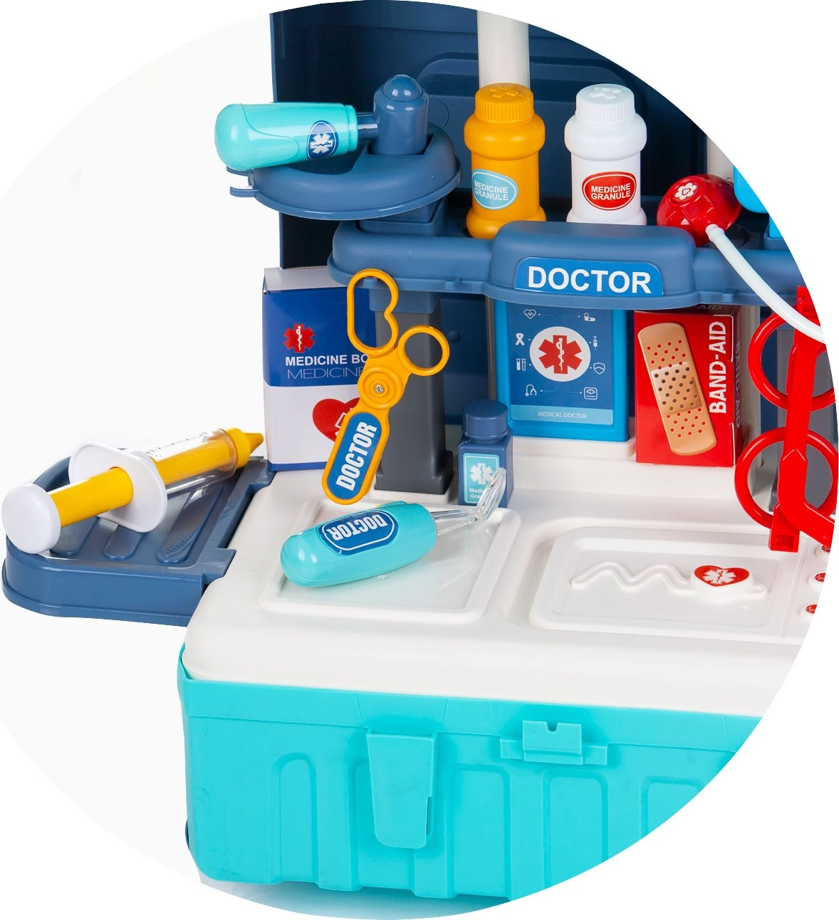 El set se transforma fácilmente de un maletín en un hospital móvil o una mesa de doctor, lo que permite múltiples formas de juego.