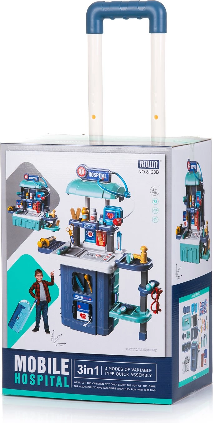 El set médico 3 en 1 para niños ofrece la posibilidad de convertir el maletín en un hospital móvil o una mesa de doctor. Este set multifuncional favorece el desarrollo de la imaginación y la creatividad de los niños, todo de forma divertida.