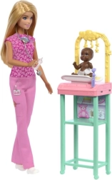 Descubre el mundo de las aventuras médicas con Barbie como pediatra. Este set de juego incluye a Barbie con un uniforme médico rosa y a su pequeña paciente. Los niños pueden disfrutar de un juego que desarrolla habilidades de cuidado y empatía.