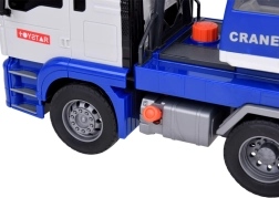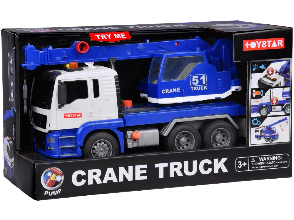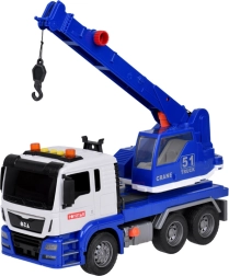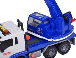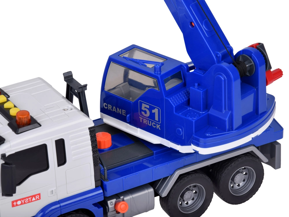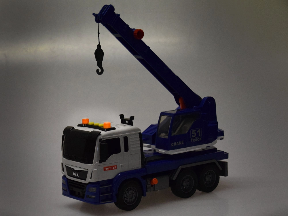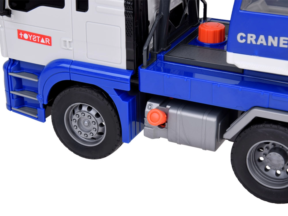 Esta grúa móvil de alta calidad está diseñada para pequeños constructores y ofrece muchas funciones realistas. Está equipada con un brazo articulado con gancho, que permite levantar y transportar objetos, y efectos de sonido que imitan el arranque del motor, la marcha atrás y el claxon.