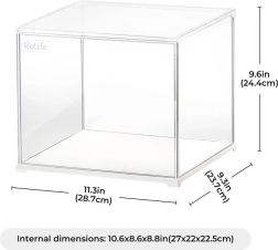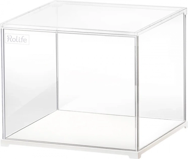 Está diseñada para casas en miniatura de la serie DG (excepto DG12). El espacio interior de 22 × 22 × 22,5 cm es ideal para la mayoría de las escenas, mientras que las dimensiones exteriores de 28,7 × 23,7 × 24,4 cm garantizan estabilidad y protección. Gracias a su diseño inteligente, las vitrinas se pueden apilar hasta en 6 niveles, ahorrando espacio en estanterías o mesas.