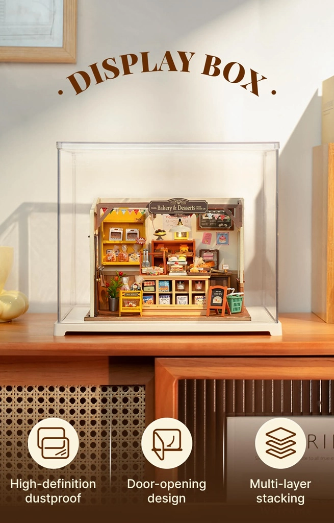 Vitrina ideal para casas en miniatura de la serie DG (excepto DG12). Mantiene la escena libre de polvo y la presenta de forma impecable, desde una cafetería y una panadería hasta un invernadero o una cocina.