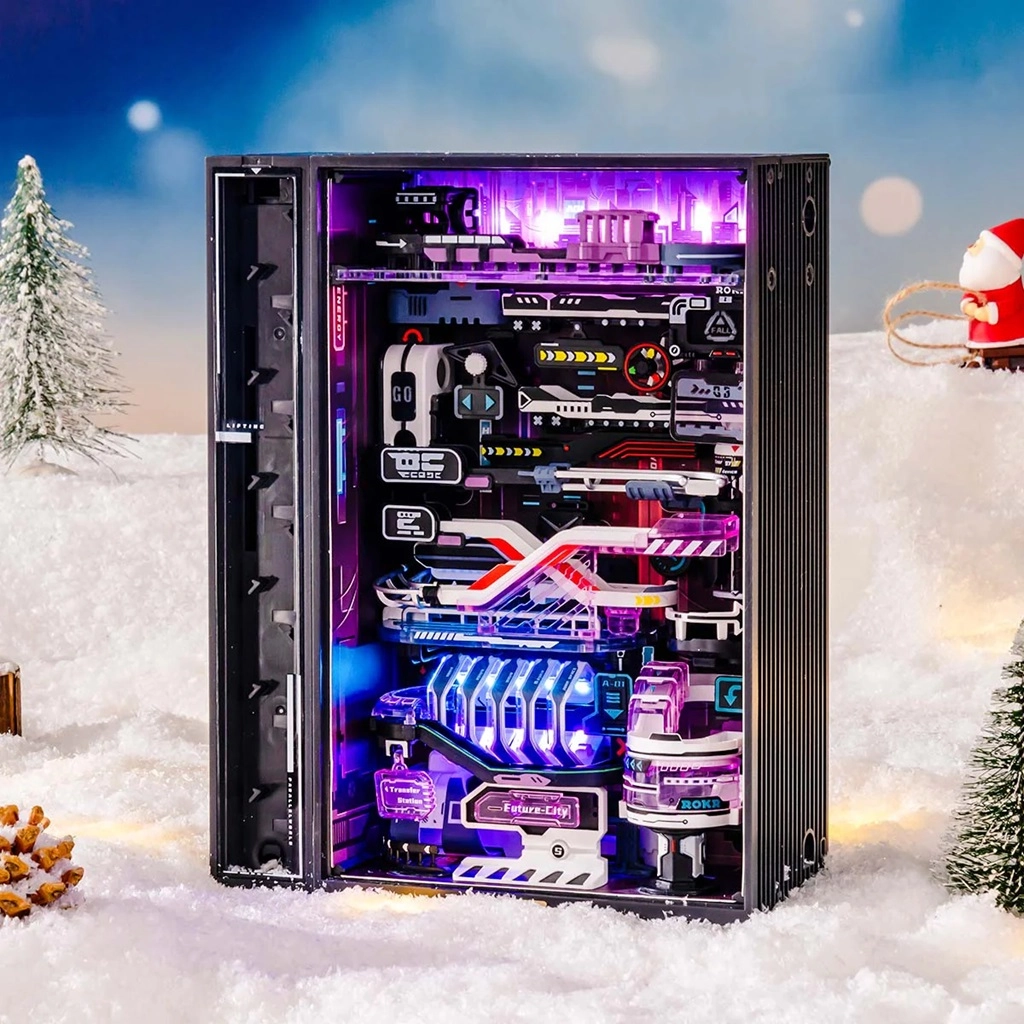 El módulo es totalmente conectable vertical y horizontalmente con otros sets, incluido “Ciudad del pasado (MR01S)”, y permite montar un complejo centro de pistas de canicas. Gracias a las piezas precisas de ABS estable y policarbonato construirás cómodamente sin pegamento ni herramientas. Se incluye un manual detallado y alimentación por USB‑C.