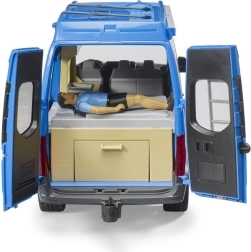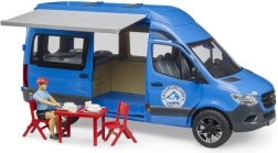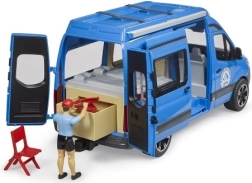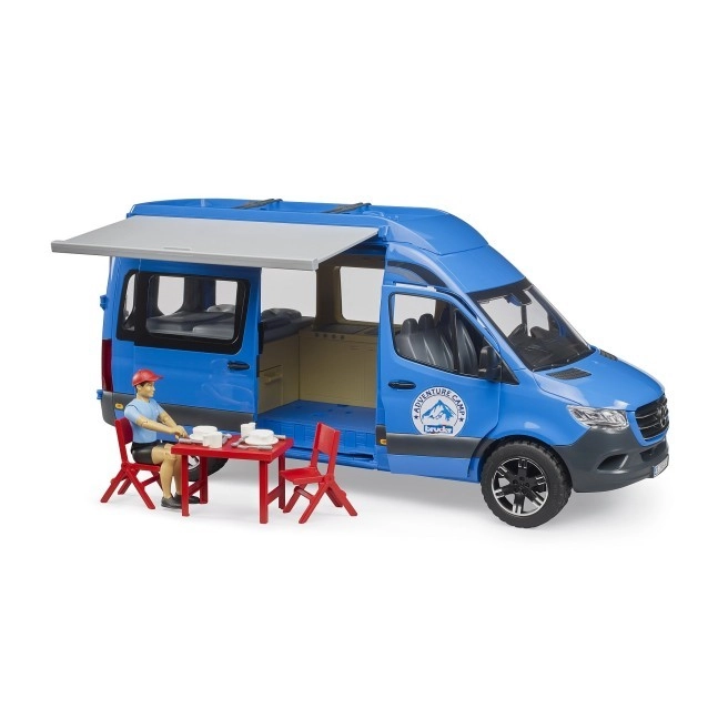 Embárcate en una aventura con la detallada autocaravana BRUDER MB Sprinter, que ofrece puertas abatibles, puerta lateral corredera, toldo extensible y un interior totalmente equipado con cama doble y cocina. Incluye una figura bworld y un set de camping con mesa, sillas y vajilla para un juego realista. Fabricado en ABS de alta calidad en Alemania.