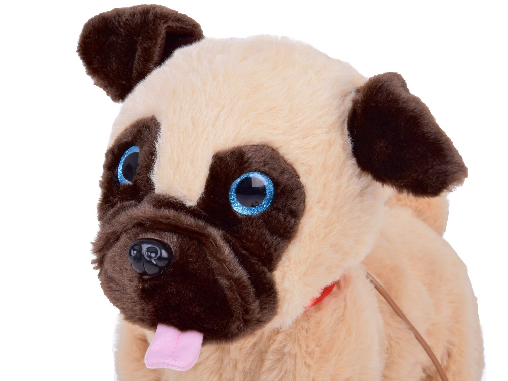 El agradable material de peluche, los ojos expresivos y la graciosa lengüita hacen de él un compañero achuchable para jugar y dormir.