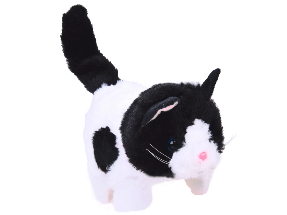 Te presentamos el gato de peluche interactivo en color blanco y negro con un collar rojo. Este adorable amigo de peluche se convertirá en una parte indispensable para cualquier niño que sueñe con tener su propia mascota. Gracias a sus funciones, proporciona horas de diversión, desarrolla la imaginación y la empatía de los niños.