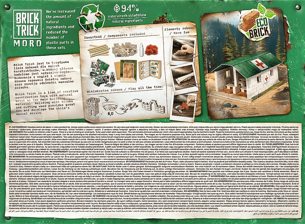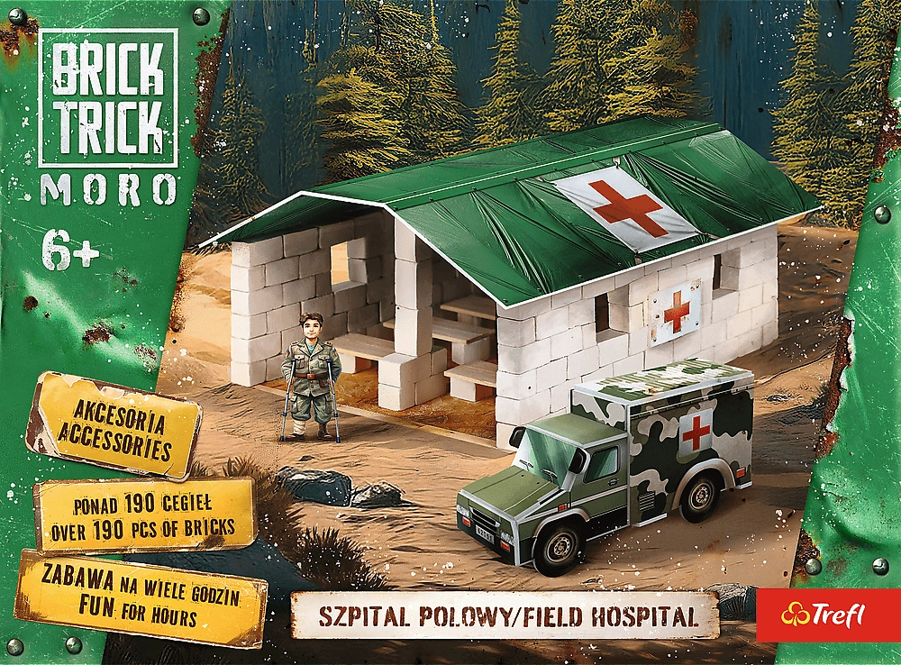 TREFL Brick Trick Moro: Hospital de campaña XL es un juego de construcción único que te permite convertirte en constructor y crear tu propio hospital con réplicas de materiales de construcción reales. Coloca ladrillo a ladrillo, corta y pega tablillas de madera y completa tu obra con decoraciones. Este set no solo ayuda a practicar habilidades manuales, sino que también desarrolla la imaginación y fomenta la concentración.
