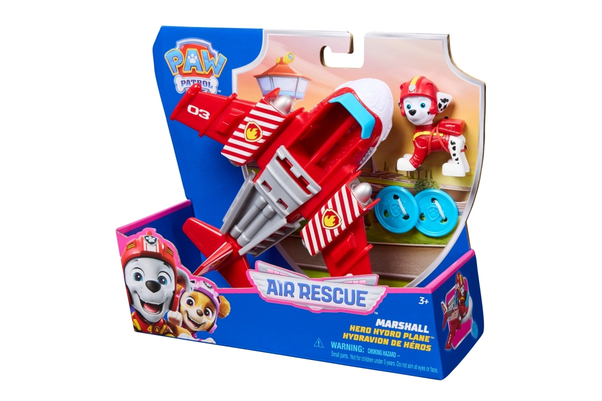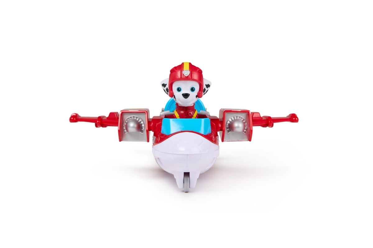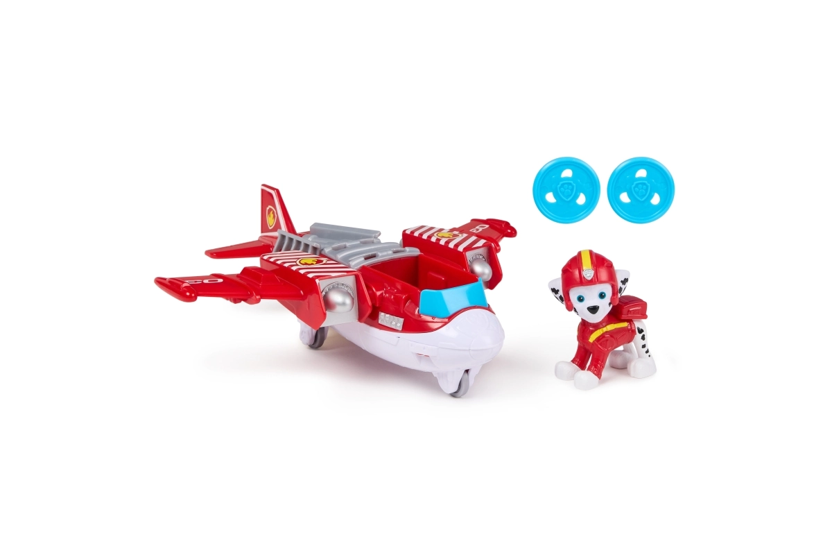 Abrocha a Marshall en la cabina, haz girar las hélices y ¡ponte en marcha! Tira de la palanca en la cola y dispara uno de los dos discos para salvar la situación. La construcción robusta en plástico, los colores llamativos y los detalles bien pensados garantizan una larga durabilidad y multitud de escenarios de juego inspirados en la serie.