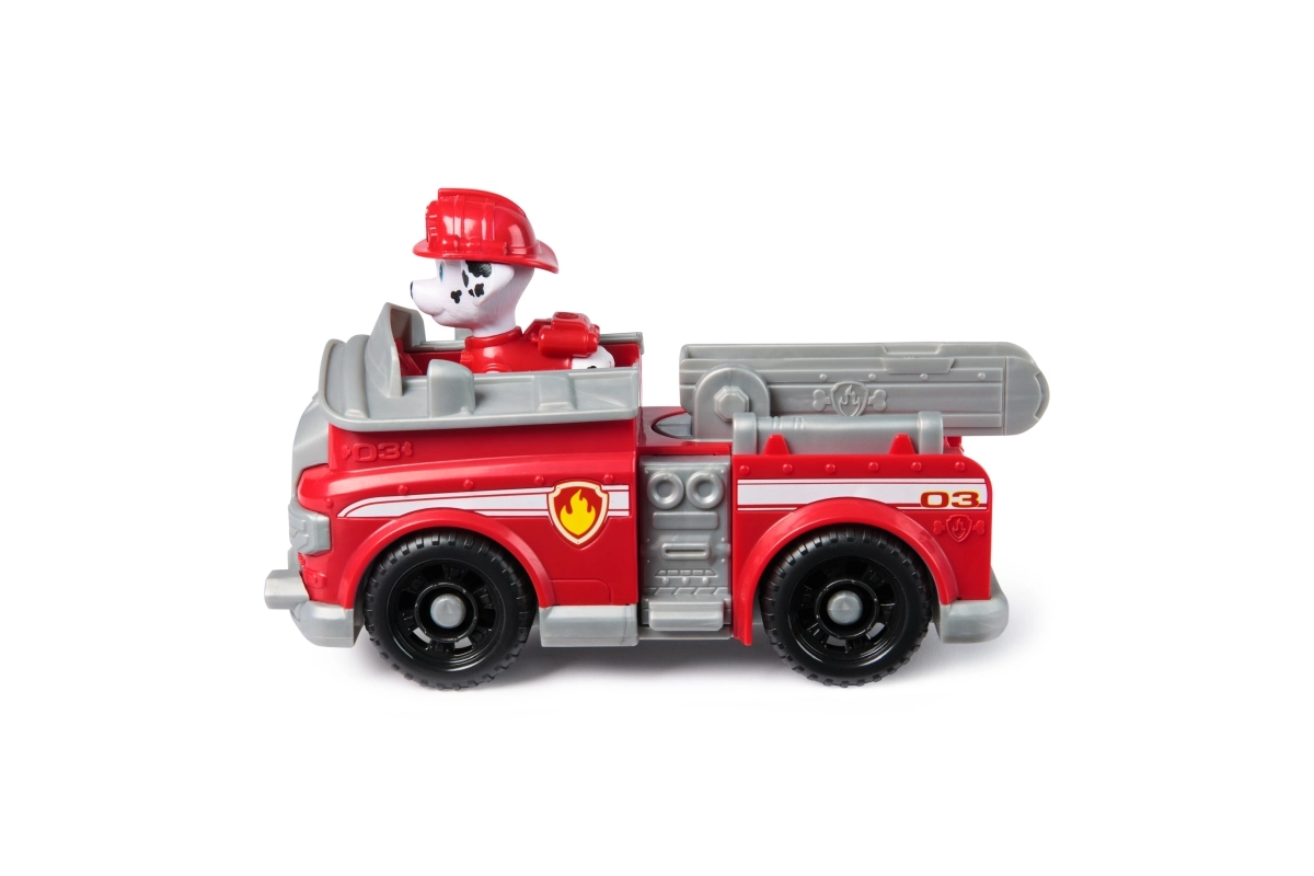 El camión de bomberos rojo de Marshall con el adorable dálmata equipado es ideal para pequeños fans de las misiones de rescate. Los niños pueden sentar fácilmente la figura en la cabina y salir al rescate con ruedas que giran suavemente y una escalera extensible. Los elementos auténticos conocidos de la serie fomentan historias creativas de Adventure Bay.