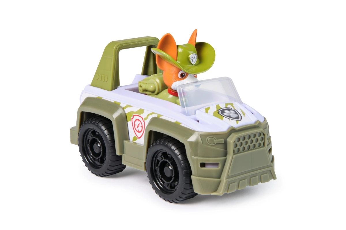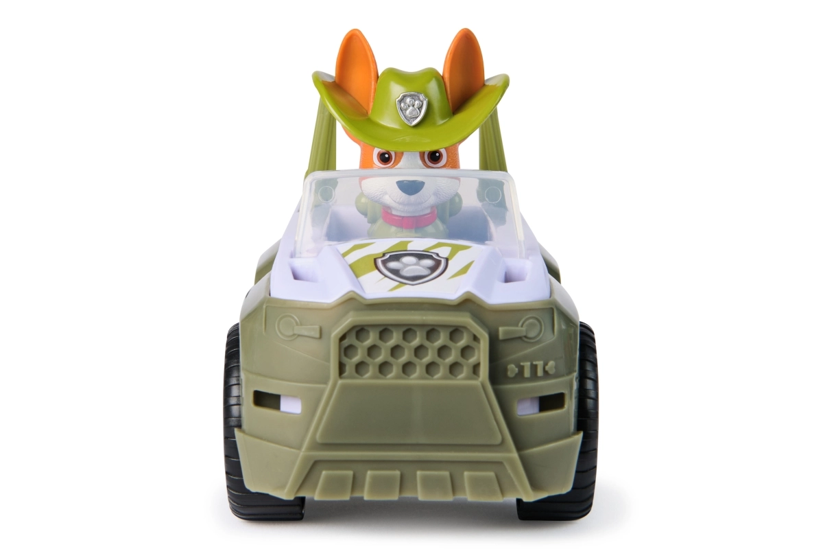 El perrito favorito Tracker de PAW Patrol está listo para misiones de rescate en el bosque con su robusto vehículo todoterreno. Siéntalo en el asiento del conductor y, gracias a las ruedas de rodaje suave, sal a salvar la Bahía Aventura. El diseño realista fomenta la imaginación, el juego de roles y el desarrollo de la motricidad fina.