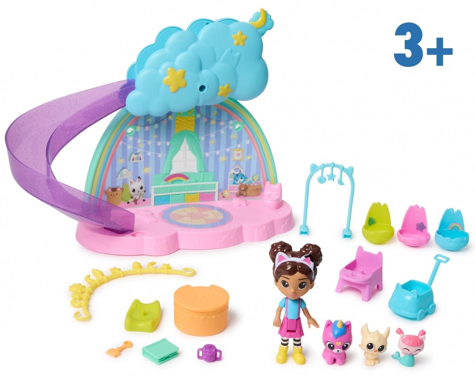 Después de un día de aventuras, coloca a los gatitos en la cuna y mecelos hasta que se duerman. Los productos de la línea Casa de Gatos de Gabka son regalos ideales para niños que aman crear su propio mundo de aventuras. Permíteles entradas inolvidables al juego con figuras de acción, accesorios y muebles para casitas.