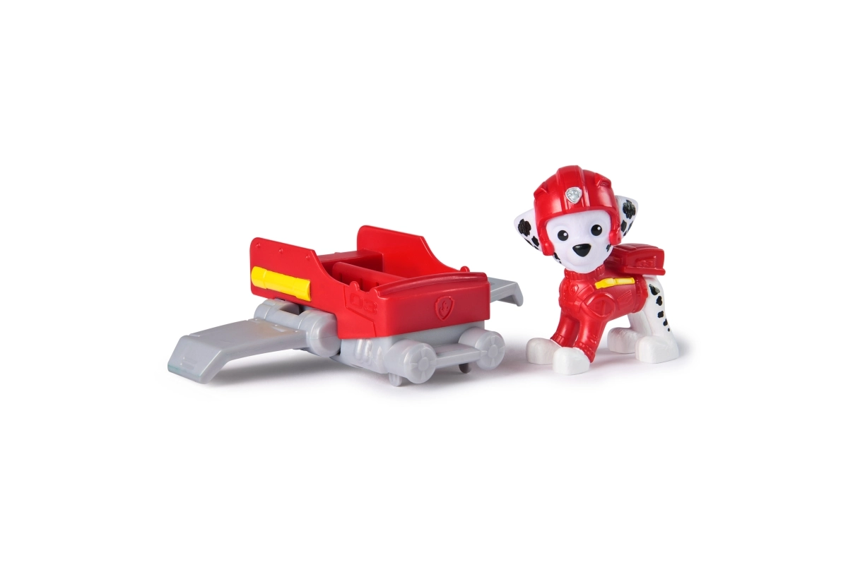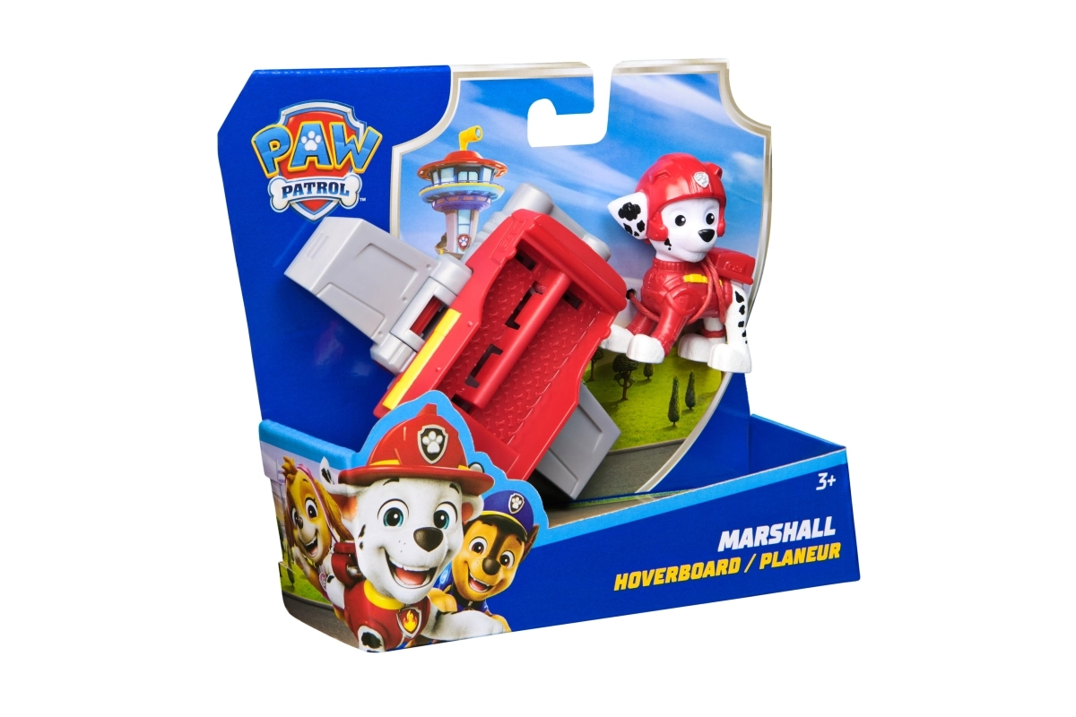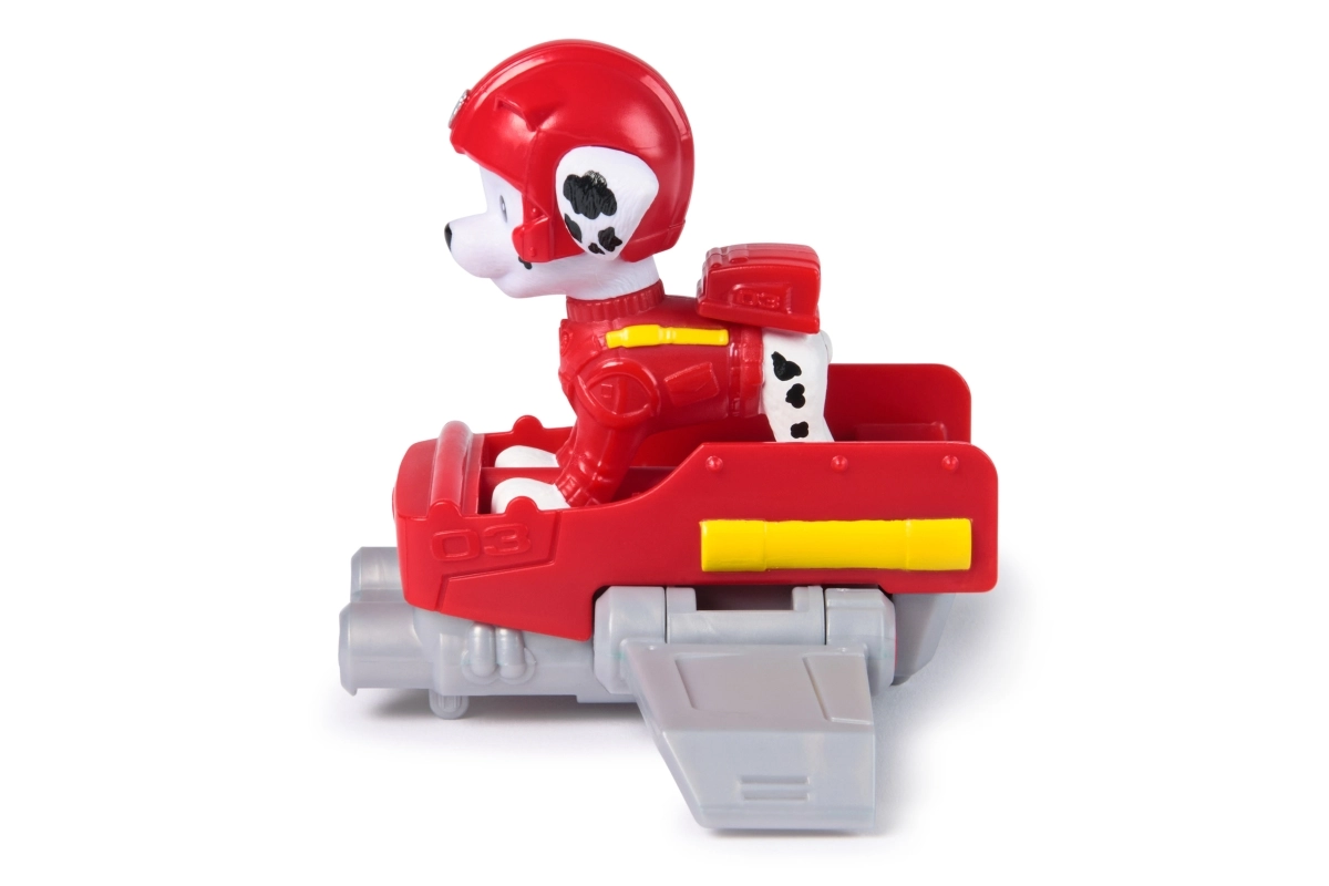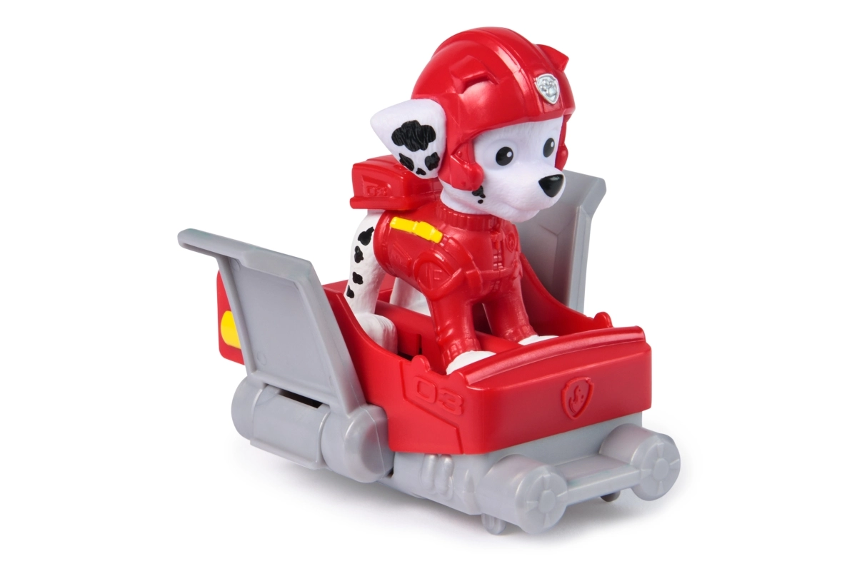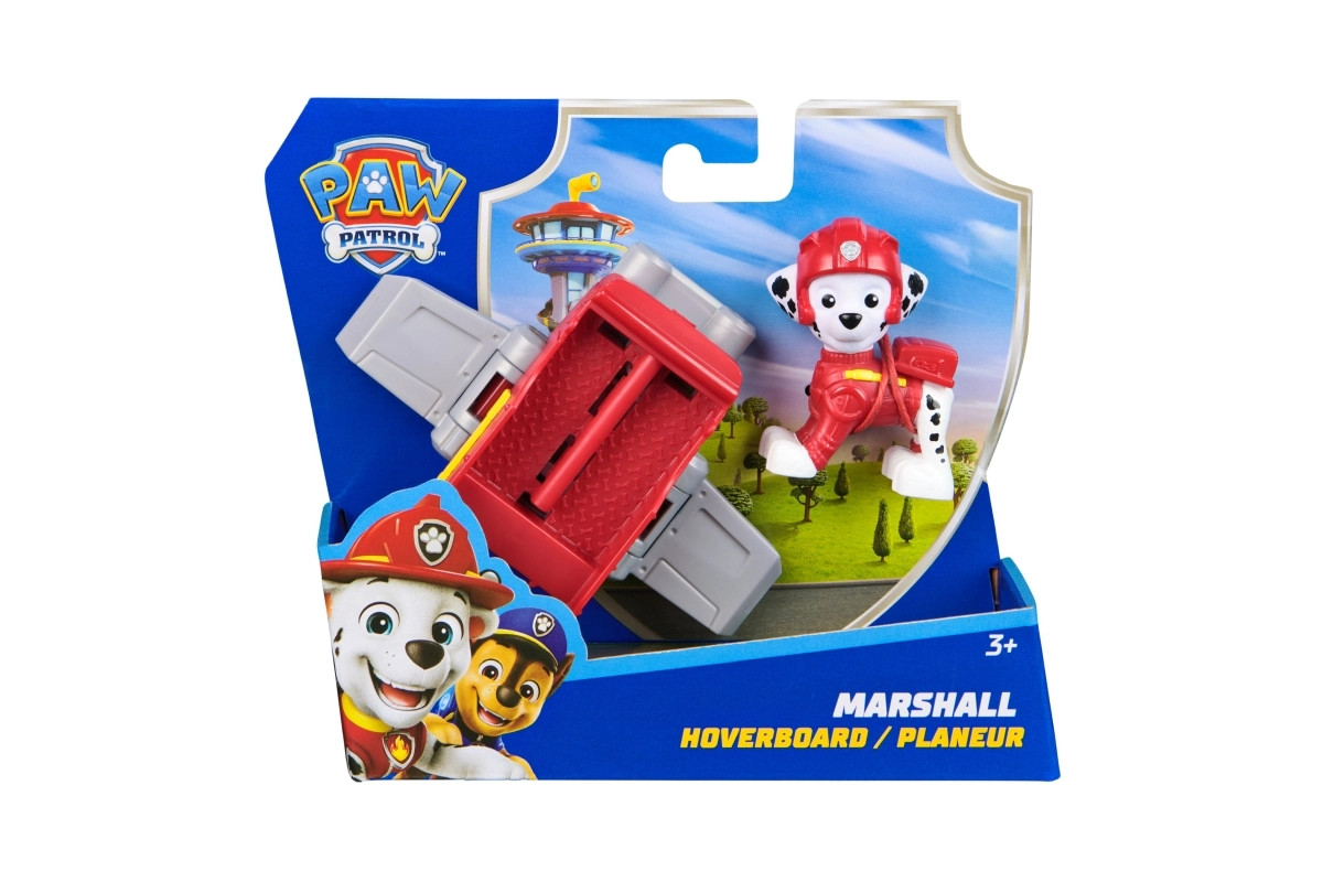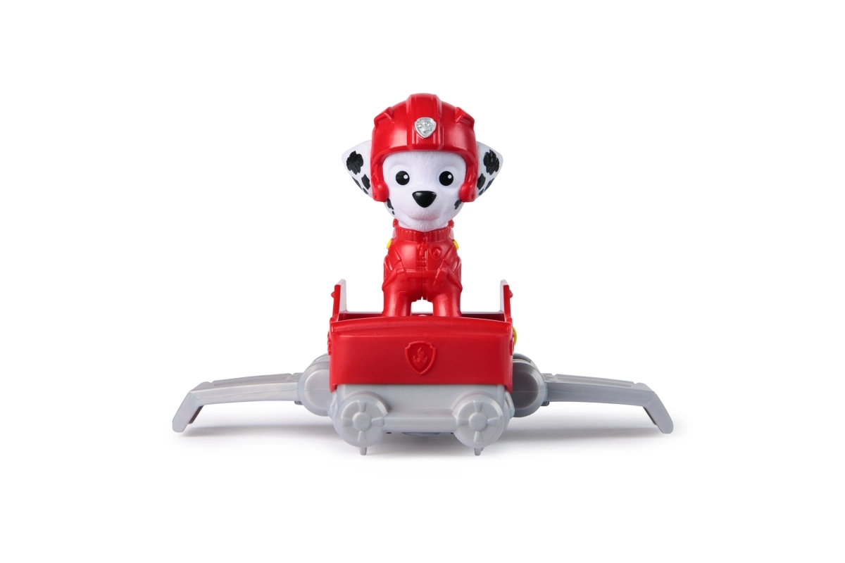 Marshall está listo para la acción en su aerodeslizador rojo con alas abatibles y acabados detallados. Fija la figura en la cabina, despliega las alas y despega hacia emocionantes misiones aéreas de rescate como en la serie PAW Patrol.