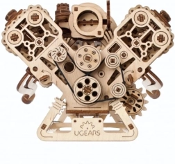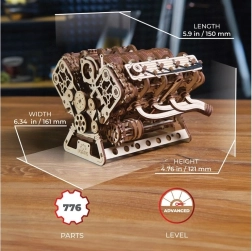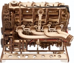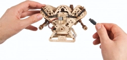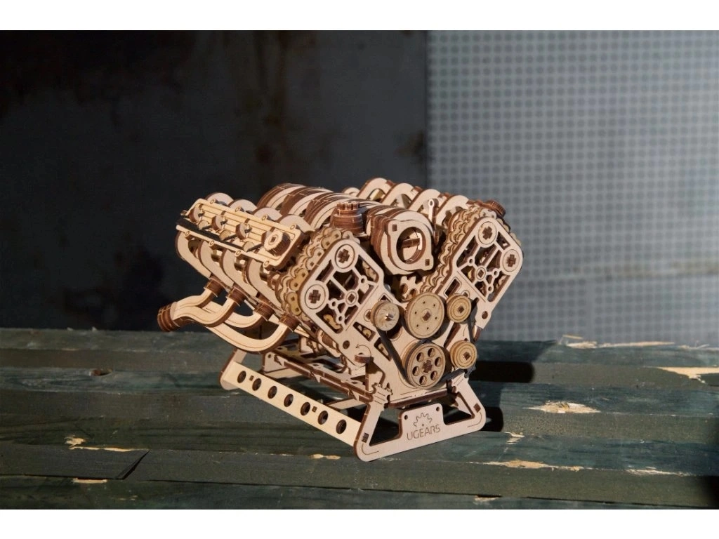 El modelo mecánico de madera del motor V8 reproduce fielmente el trabajo de un auténtico ocho cilindros: ocho cilindros con el ritmo de los pistones, 16 válvulas accionadas por árboles de levas, distribución con cadena ajustable (32 eslabones) y accesorios impulsados por correa tipo serpentina. Gracias a la alimentación por USB‑C o al giro manual, disfrutarás de movimientos mecánicos realistas y comprenderás mejor los principios de un motor de combustión.
