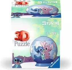 El Puzzle Ball 3D de la marca Ravensburger ofrece piezas de plástico precisas que encajan a la perfección gracias a su curvatura especial. Una vez montado, obtendrás una esfera firme y resistente con los personajes favoritos Stitch y Angel, totalmente sin necesidad de pegar.