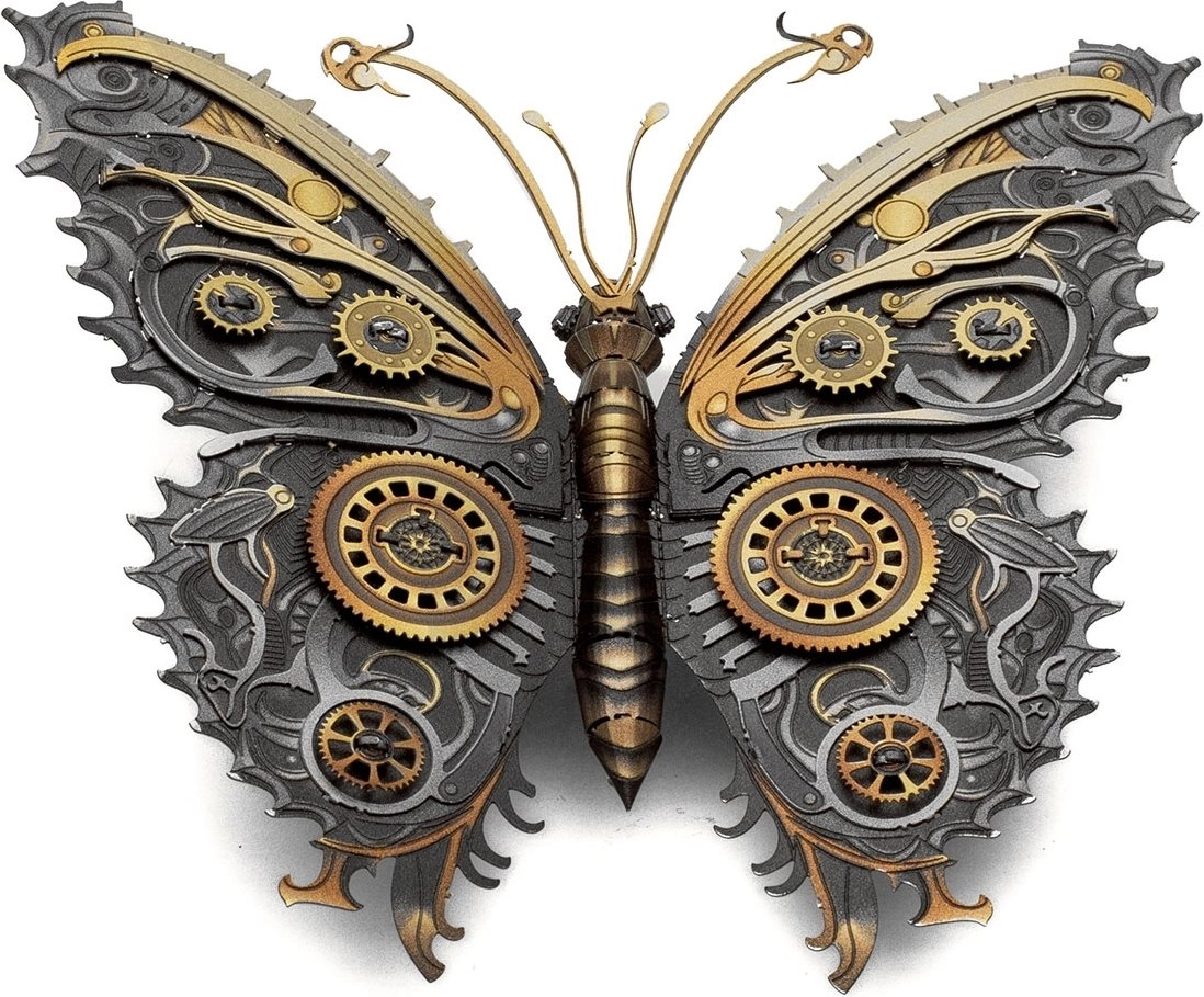 La mariposa steampunk de METAL EARTH fusiona la fantasía con el diseño industrial de la era victoriana. A partir de láminas planas de acero surge gradualmente un modelo tridimensional con una rica textura mecánica que recuerda a engranajes y cogs. Gracias a los detalles grabados con láser, el modelo resulta auténtico y se convierte en una decoración original y en un regalo perfecto para amantes del steampunk y del arte técnico.