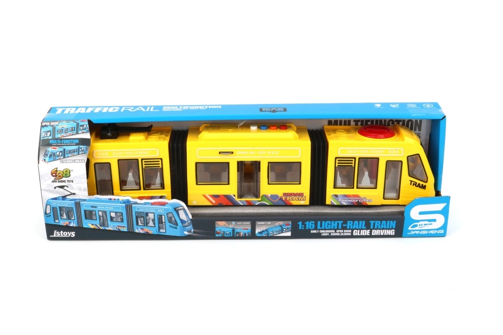 Un elegante tranvía a escala 1:16 es una excelente opción para pequeños aficionados al transporte urbano. Ofrece un atractivo diseño amarillo, un tamaño ideal para jugar en interiores y fomenta la imaginación y el juego creativo.