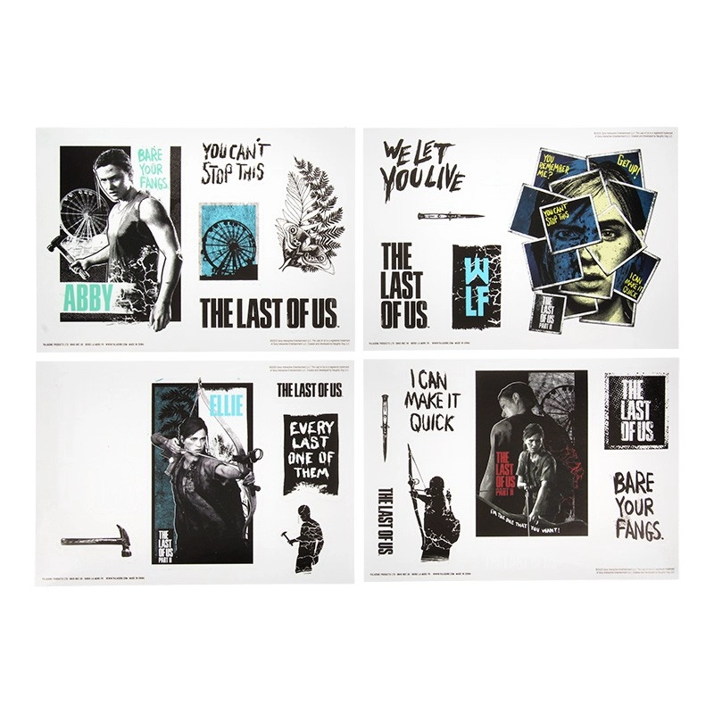 Consigue un juego exclusivo de pegatinas de vinilo con motivos de la popular saga de videojuegos The Last of Us. Ideal para dar vida a portátiles, maletines, teléfonos u otras superficies lisas. Este set con licencia oficial incluye diversos diseños que encantarán a cualquier fan.
