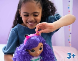 La muñeca Gabby trae a los peques el ambiente favorito del éxito de Netflix directamente a su habitación. Su bonito pelo rizado morado, el traje de fiesta y la diadema de gatita con orejitas giratorias estimulan la imaginación y el estilismo. Gracias a las extremidades articuladas, podrás ponerla de pie, sentarla y crear poses divertidas con facilidad.