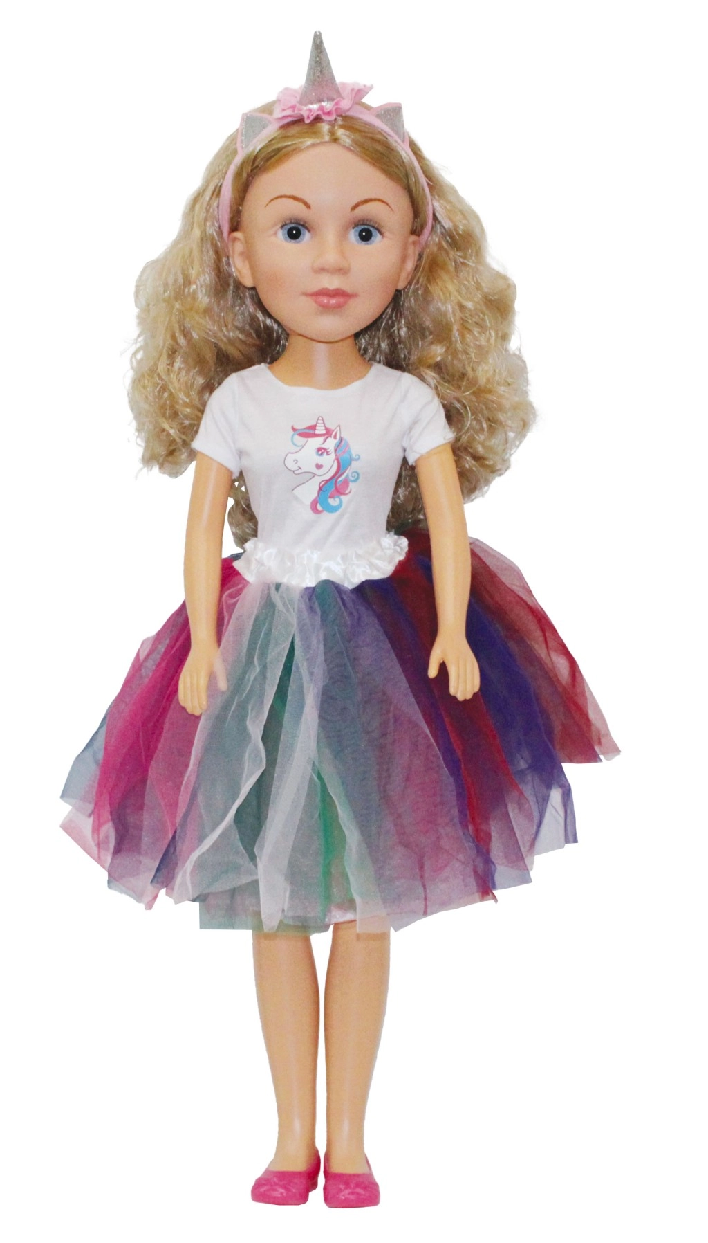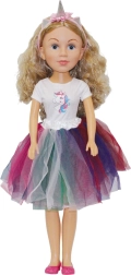 Esta hermosa muñeca de 80 cm de altura destaca por sus detalles y sus preciosos ojos de vidrio. El elegante vestido de novia con diseño de unicornio es la elección ideal para amantes de las atmósferas de cuento de hadas.