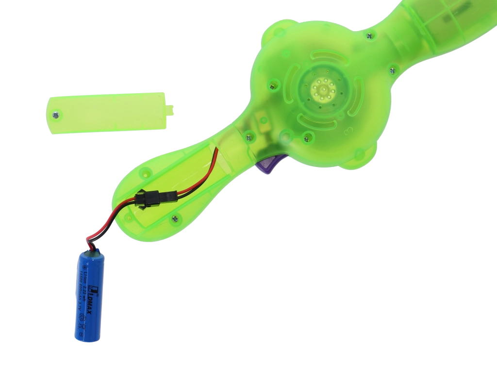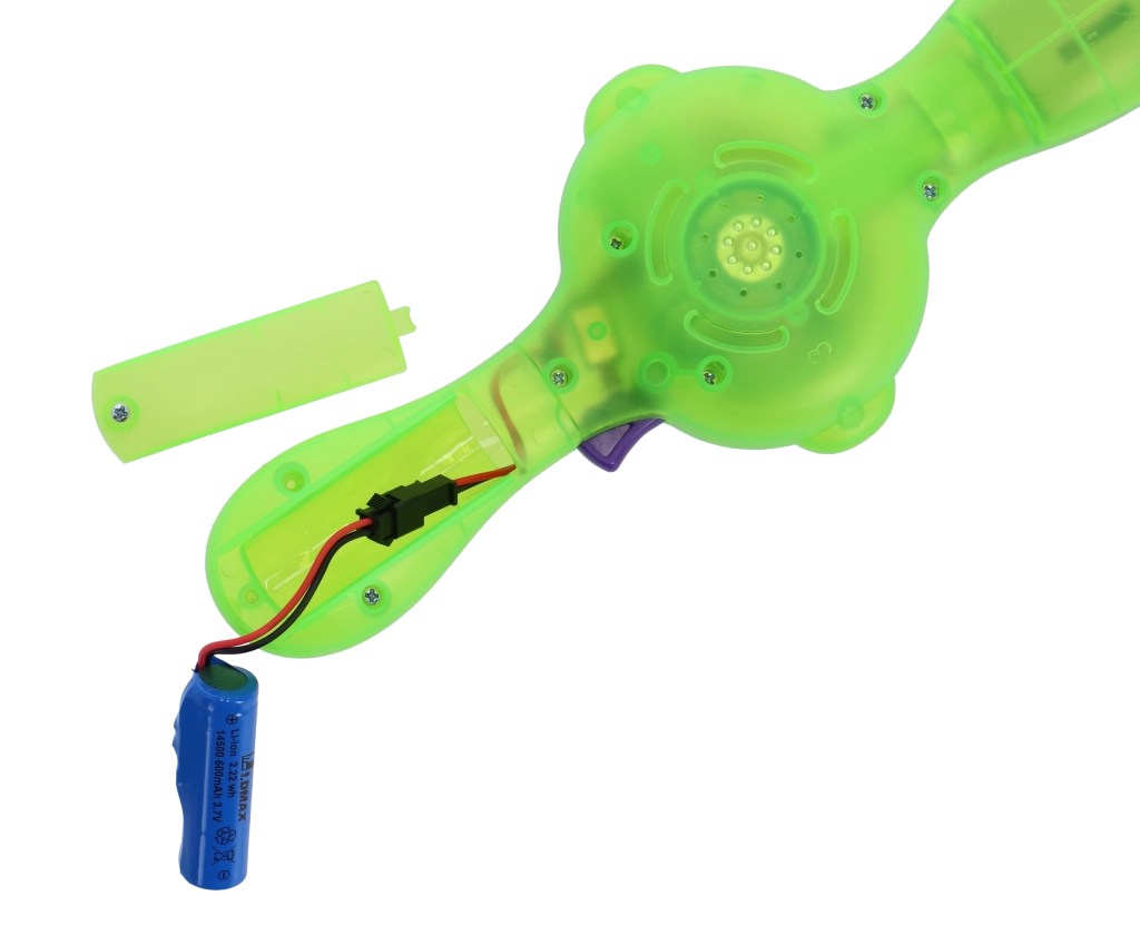 Un efecto especial llena la burbuja de “humo”, que sale de forma espectacular al explotar: perfecto para trucos mágicos y shows nocturnos.