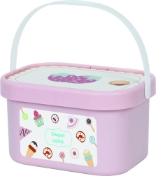Incluye también una adorable vajilla: tazas, cucharitas, tenedores y cuchillo, además de una resistente caja de plástico con asa para un almacenamiento y transporte fáciles. Los colores pastel y las piezas lisas y seguras invitan al juego individual o en grupo.