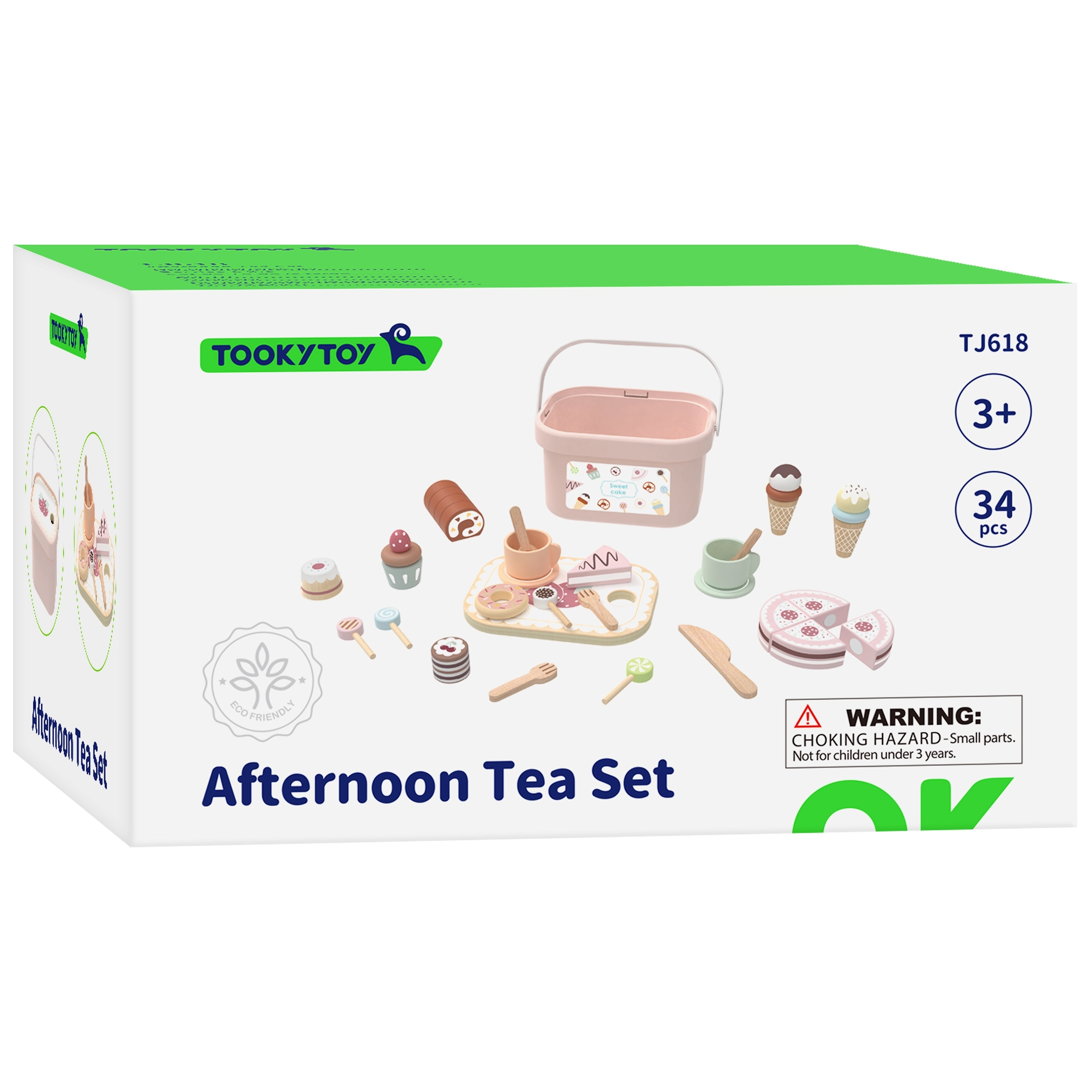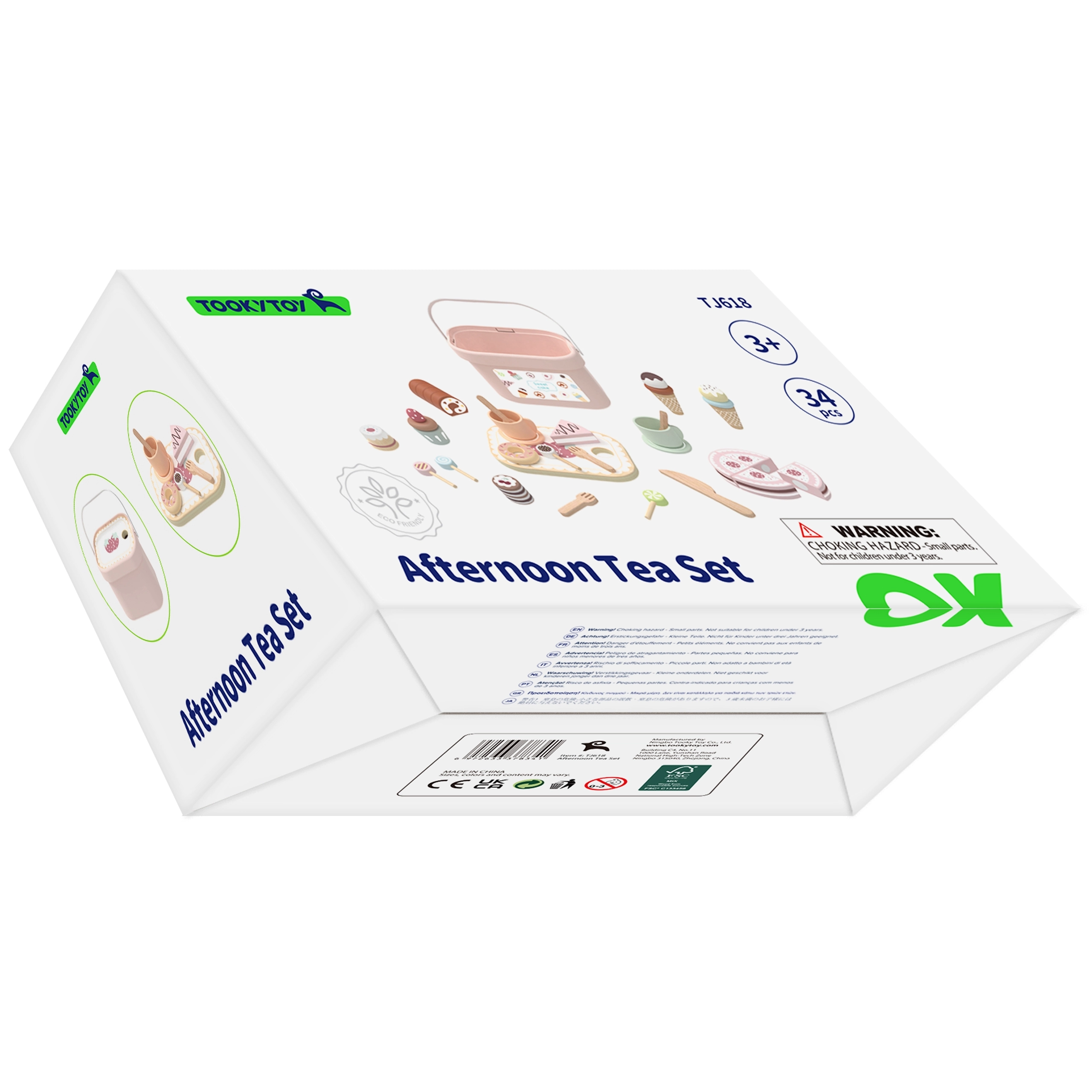 Este set de dulces de madera de alta calidad ofrece todo para una elegante hora del té: pastel para cortar, brazo de gitano, dona, galletas, macarrones y helado. Los niños practican la motricidad fina al cortar porciones y disponerlas en la bandeja, y desarrollan la imaginación y la comunicación al jugar a la pastelería o al té.
