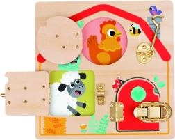 Descubra un juguete divertido y educativo para los más pequeños: tabla de actividades de madera con cerraduras, que desarrolla la motricidad fina, el pensamiento lógico y la curiosidad. Tres diferentes mecanismos de cierre entretienen a los niños de forma atractiva y les enseñan paciencia y coordinación mano-ojo.
