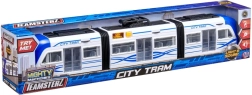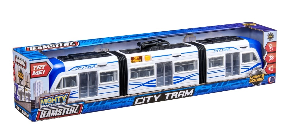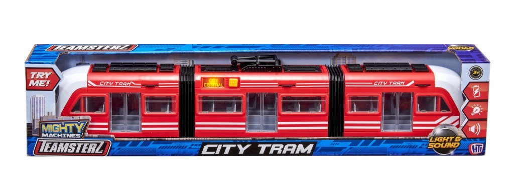 Descubre el mundo del transporte urbano con el tranvía Teamsterz. Este juguete está equipado con función de apertura de puertas y dos articulaciones flexibles que permiten curvas suaves, imitando el movimiento de un tranvía real.