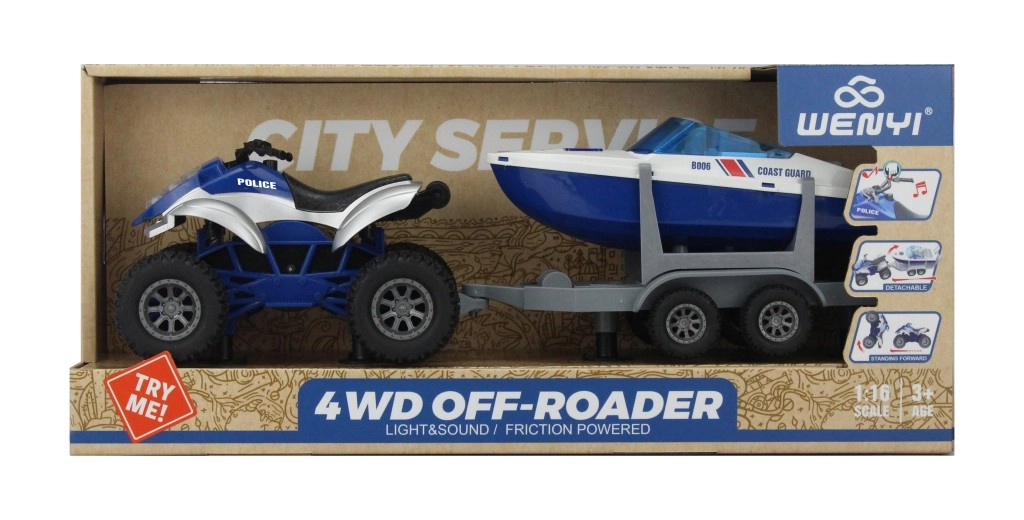 Disfruta de un juego versátil gracias al remolque desmontable, que amplía las posibilidades de juego. Además, este quad puede hacer trucos acrobáticos, como ponerse sobre las ruedas delanteras, añadiendo un extra de adrenalina a cada partida.