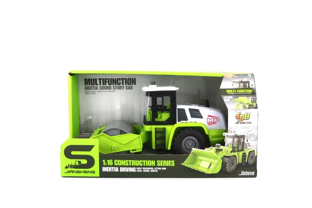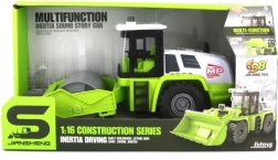 Este detallado rodillo verde encantará a los pequeños constructores con su aspecto realista y funciones que dan vida a cualquier obra infantil. Gracias al mecanismo de inercia, el vehículo avanza con un suave empujón, mientras que los efectos de luz y sonido recrean el ambiente de un verdadero trabajo en carretera.
