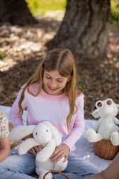 Con un tamaño de aproximadamente 41 cm, este conejito es lo bastante grande para ofrecer consuelo y, a la vez, compacto para transportarlo fácilmente.