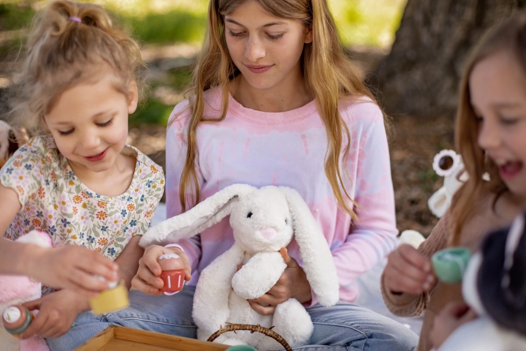 El color crema y los detalles delicados hacen de este conejito un hermoso complemento para cualquier habitación infantil.