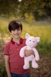 Con detalles como orejas y una expresión sonriente, este cerdito es irresistible para cualquier niño.