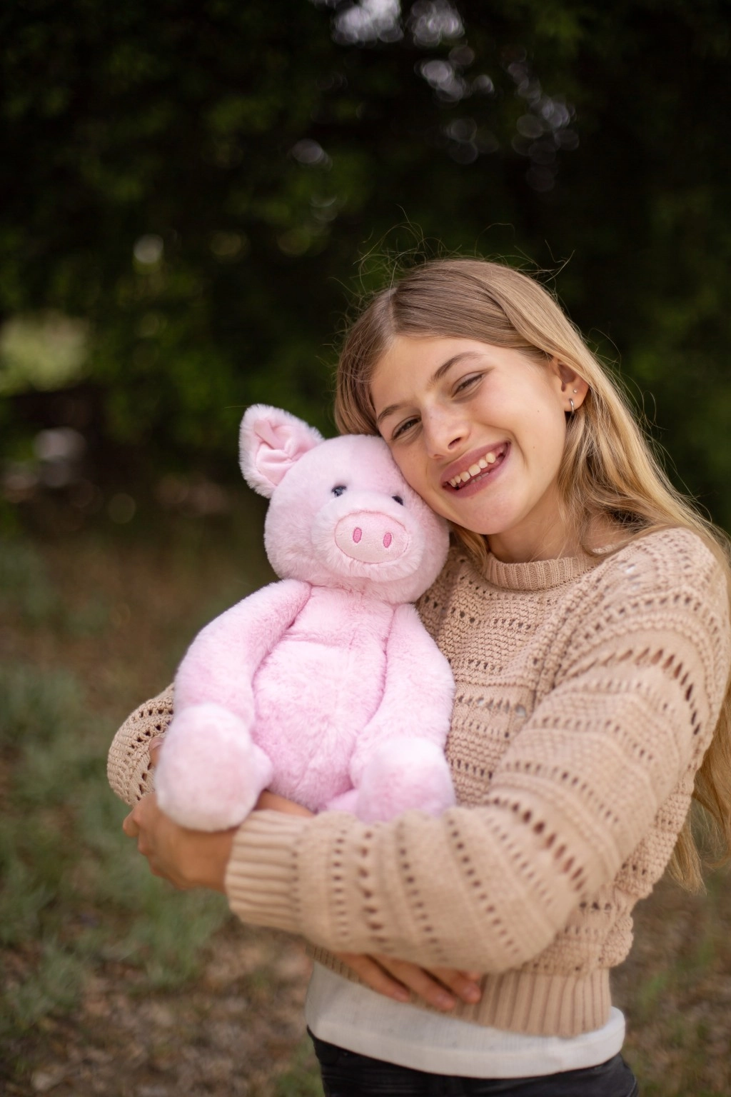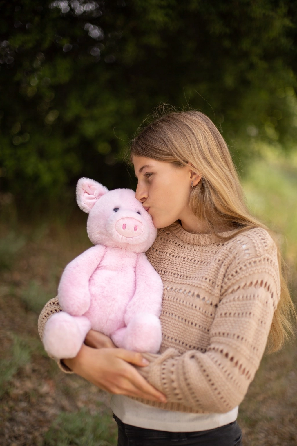 Este cerdito de peluche está diseñado especialmente para niños que buscan un juguete para juegos imaginativos o simplemente un compañero durante sus aventuras. Su tamaño ligeramente compacto asegura que tu pequeño quiera llevarlo a todas partes.
