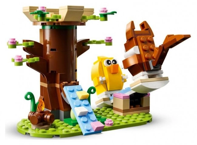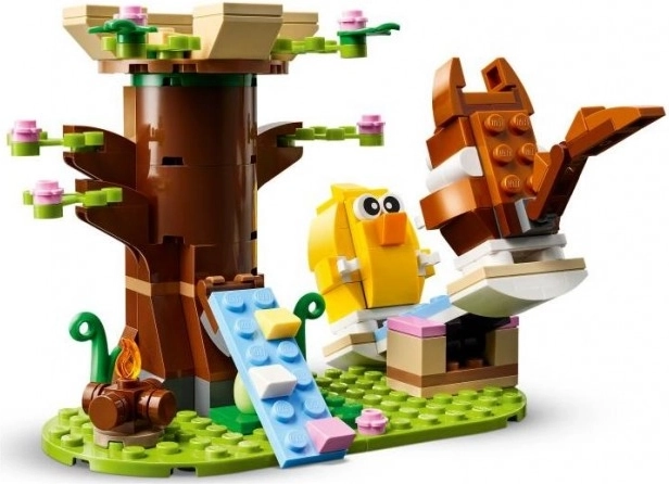 El Parque de primavera para animales de LEGO es un regalo perfecto para niños a partir de 8 años y también para mayores. Este set incluye una abeja, pajaritos, una casa en el árbol, una hoguera, un columpio y dos huevos de Pascua. Los niños pueden hacer que los animales suban por la rampa hasta la casa en el árbol, se sienten junto al fuego o se columpien.