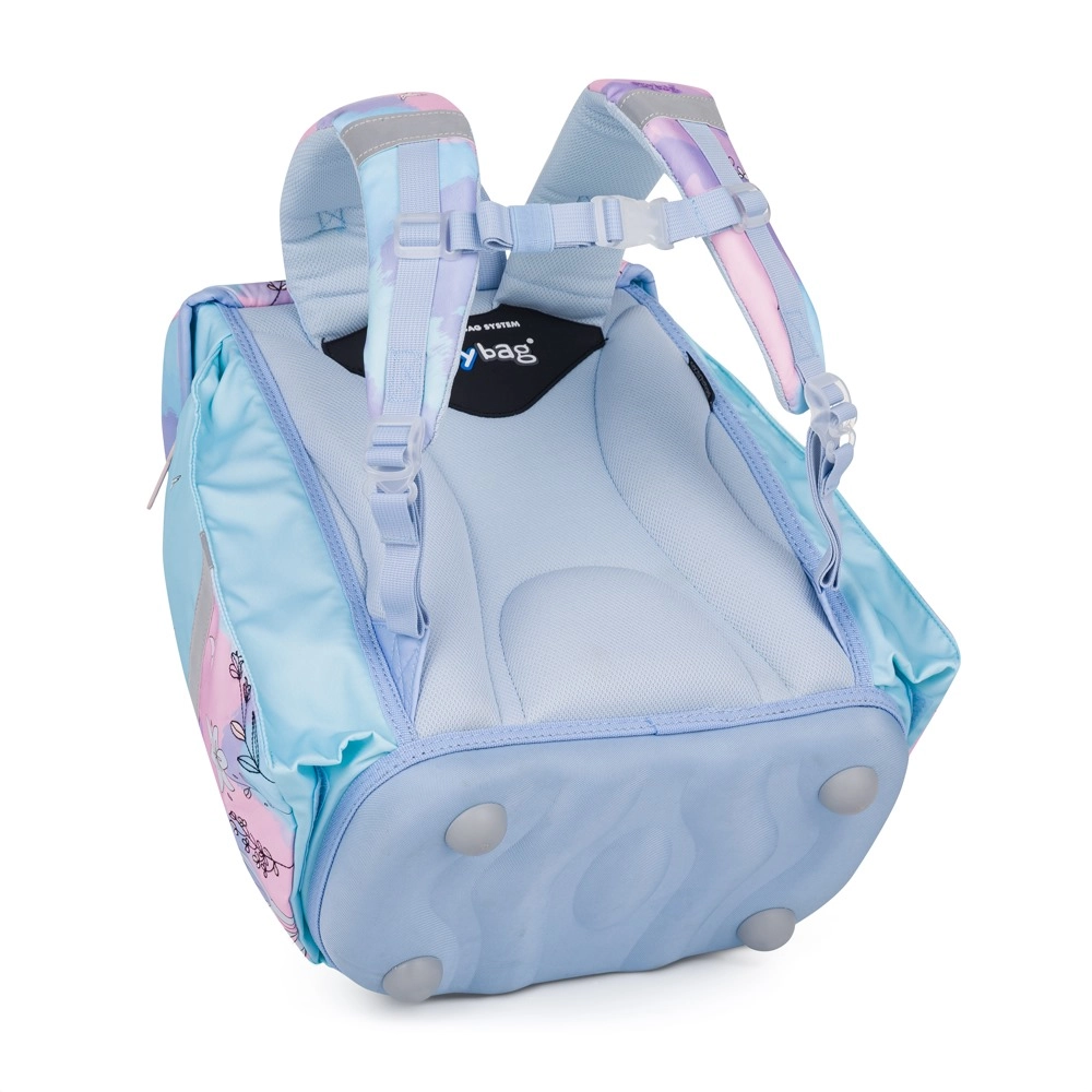 Juego escolar ligero y práctico para pequeños escolares con una altura a partir de 121 cm. La mochila principal pesa solo 970 g, ofrece espalda ergonómicamente acolchada, correas de pecho y de ajuste y una organización completa con cierre magnético. Incluye también estuche y bolsa para zapatillas con un motivo a juego de colibrí.