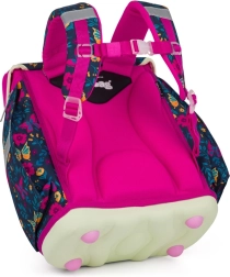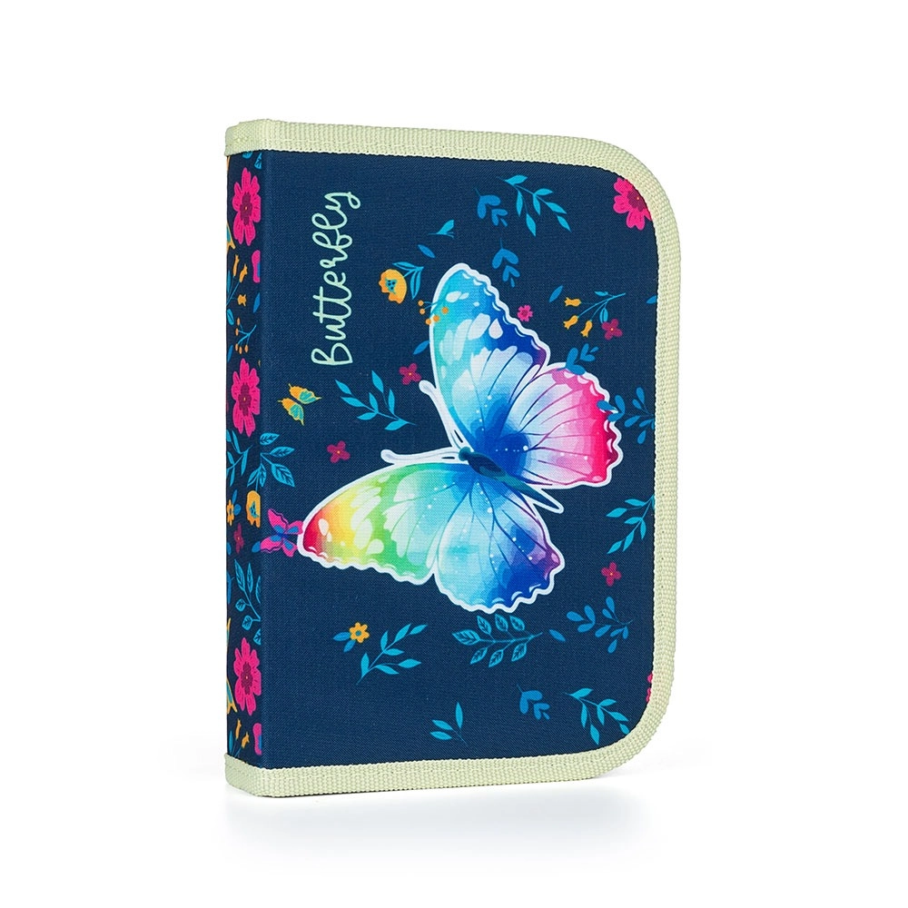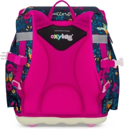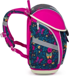Ligero set escolar de 3 piezas con motivo de mariposa que incluye una mochila espaciosa, bolsa y estuche. La mochila pesa solo 970 g, tiene acolchado ergonómico, tirantes anchos ajustables con correa de pecho, elementos reflectantes y cierre magnético. Ofrece un volumen de 26 l, un práctico separador y múltiples bolsillos: la elección ideal para los escolares más pequeños a partir de 121 cm.