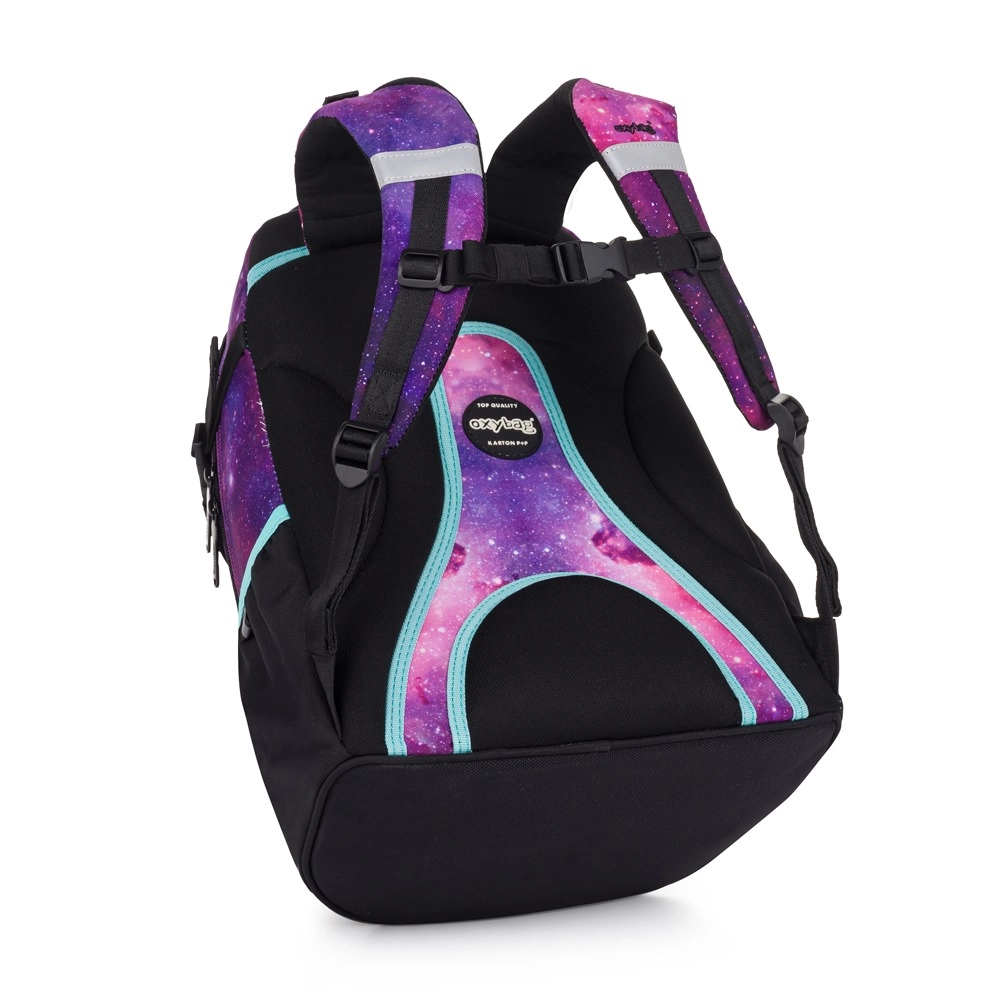 Descubra la moderna mochila escolar Oxy Ombre Galaxy con atractivo diseño espacial en tonos morados y rosas. Diseñada para niños a partir de 136 cm de altura, ofrece una equilibrada combinación de comodidad, resistencia y practicidad para el día a día escolar.