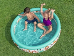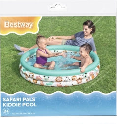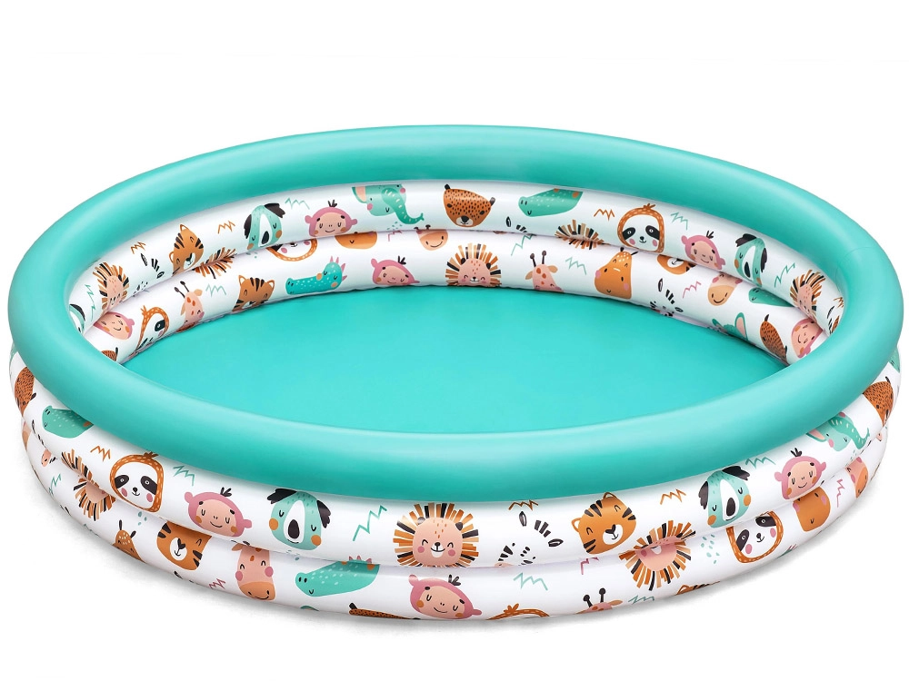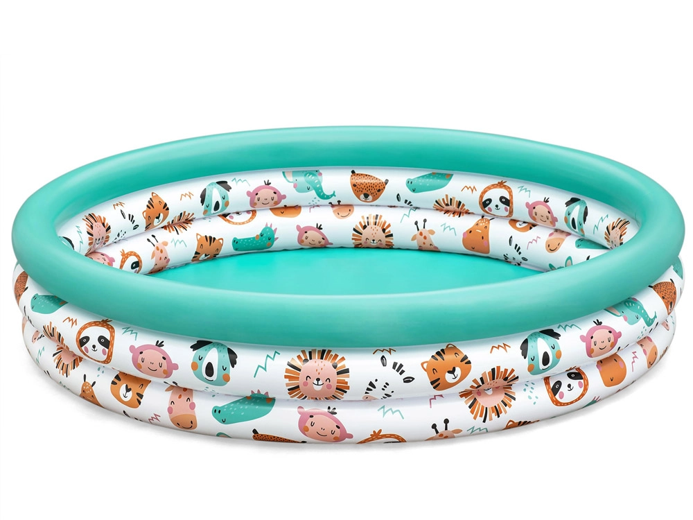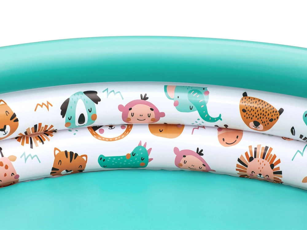 La piscina inflable infantil Safari Animalitos de la marca Bestway está hecha de PVC de alta calidad y resistencia, lo que garantiza una larga vida útil y resistencia a los daños. Con tres anillos inflables, proporciona estabilidad y comodidad durante el juego. Las paredes suaves aseguran confort y seguridad en las aventuras acuáticas de tu pequeño.