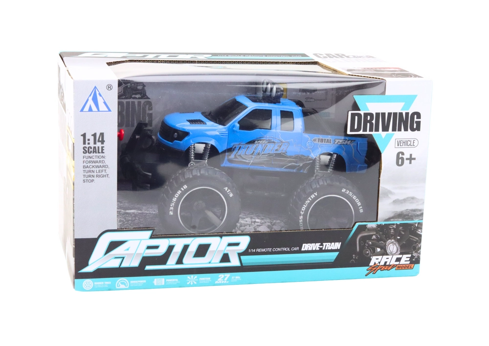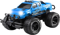 El coche RC todoterreno azul a escala 1:14 es una opción ideal para niños y principiantes del off-road. Su construcción robusta, carrocería realista, paragolpes y faros realzan su atractivo, mientras que los neumáticos grandes se adaptan a distintos tipos de superficie.