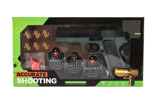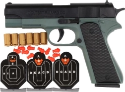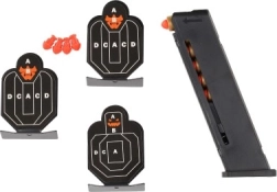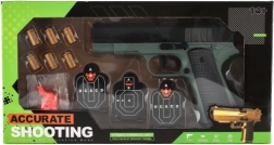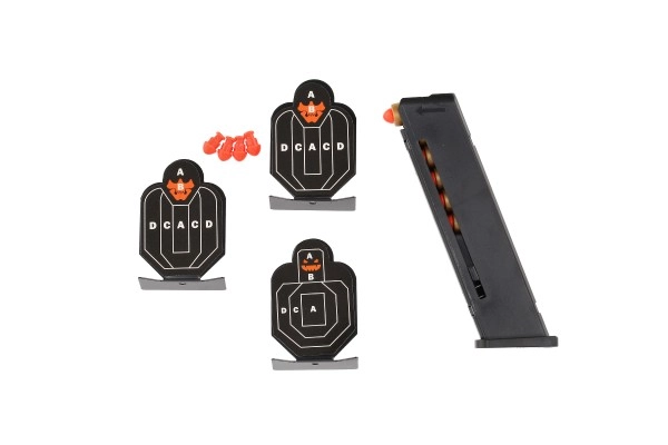 Equípate con esta pistola de dardos de espuma y pon a prueba tu puntería en la diana. El set incluye 6 dardos y 3 dianas para máxima diversión.