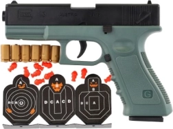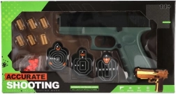 Este set es ideal para uso en interiores y exteriores y está destinado a niños a partir de 8 años. La pistola, fácil de manejar, aporta emoción y adrenalina con disparos de gran precisión.