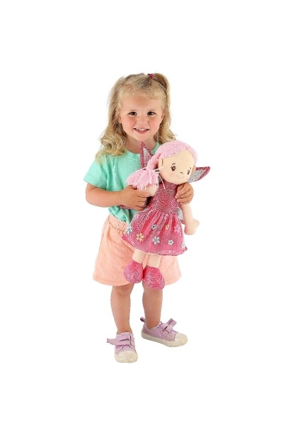 La muñeca de tela Hada Peonía es totalmente segura para niños a partir de 3 años y se transporta fácilmente. Recibe su nombre de una hermosa flor y su diseño incluye delicados detalles que a los niños les encantan.