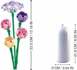El set es compatible con LEGO, COBI y Mega Bloks, así que podrá ampliarlo fácilmente con otros elementos de su colección. Gracias a sus proporciones realistas, el ramo terminado luce de maravilla en un jarrón en casa o en la oficina.