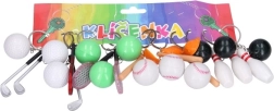 Llavero Deportivo 4 en 1 es el complemento perfecto para los entusiastas del deporte. Reúne cuatro deportes populares en un paquete compacto: golf, tenis, béisbol y bolos.